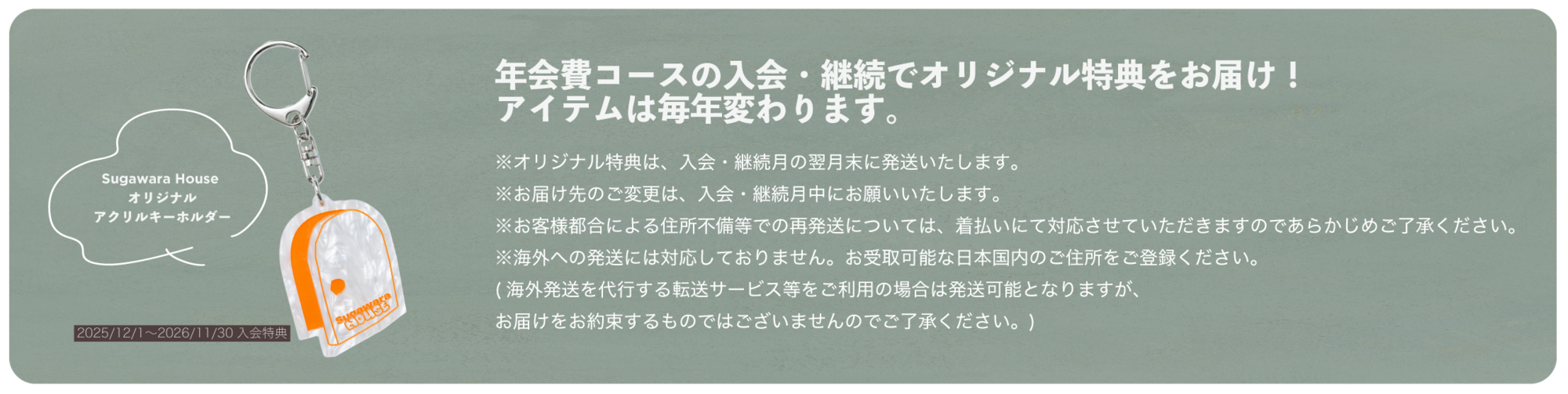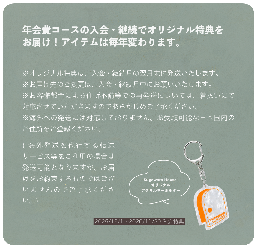 Sugawara House会員限定のグッズ販売や、一般の方より一足先に購入できる先行購入権の付与。Event
